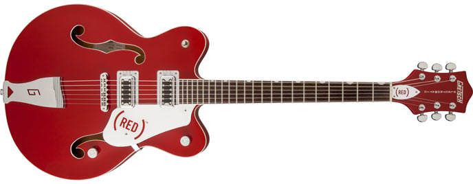 La G5623 Electromatic® Bono signature è una Gretsch Thinline con blocco centrale in abete, che offre un suono ad alto gain e un ottimo controllo sul feedback. Le caratteristiche sono corpo e manico in acero, tastiera 22 tasti in palissandro, binding, segnatasti Neo-Classic™, due pickup "Black Top" Filter'Tron™ con selettore a tre posizioni, controlli di volume e tono, ponte Adjusto-Matic™ cordiera "G", meccaniche Grover® deluxe, hardware cromato e astuccio deluxe.
